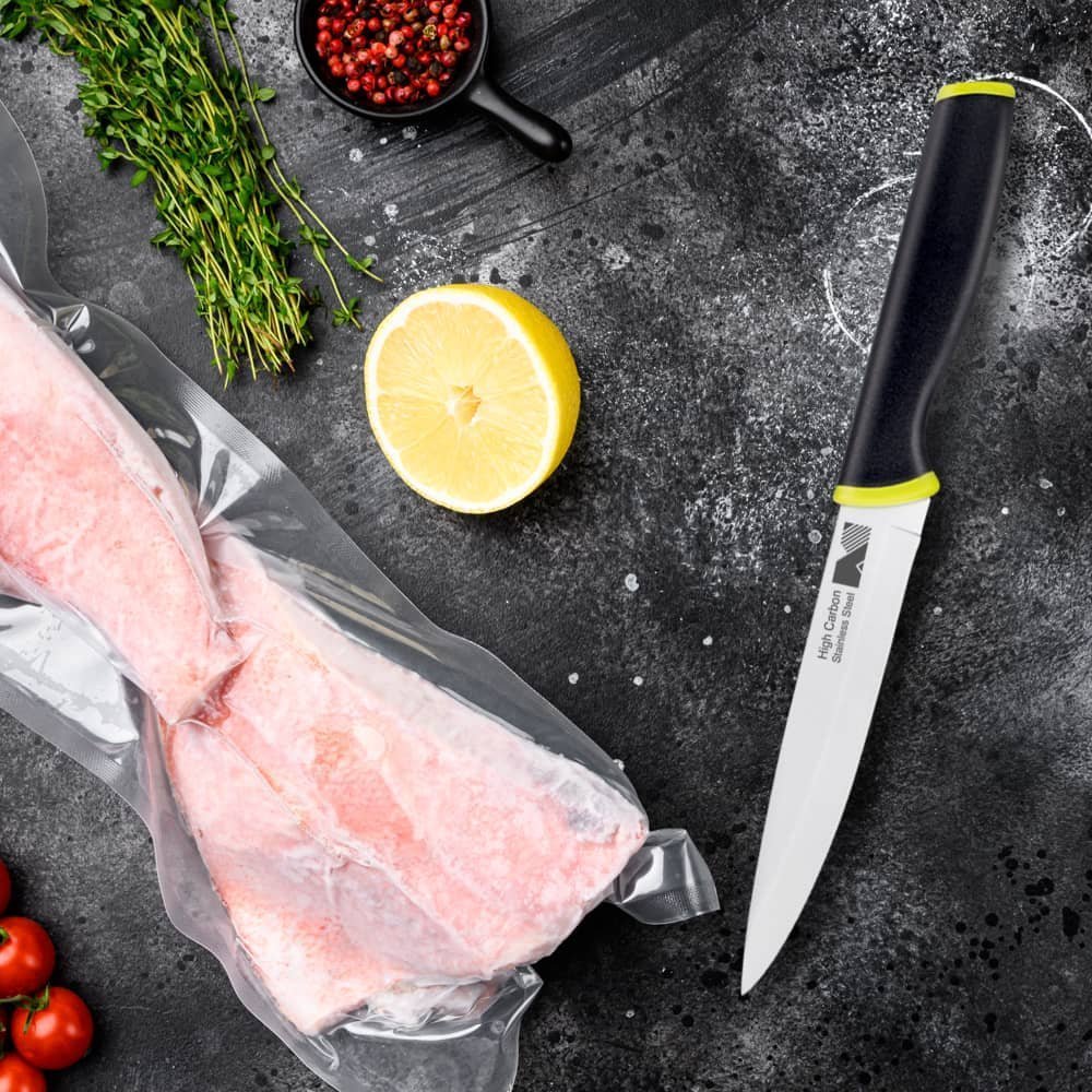 This utility knife’s 5″ blade length makes it a versatile favorite for all kinds of prep tasks, from peeling and trimming fresh produce to slicing meats and cheeses.