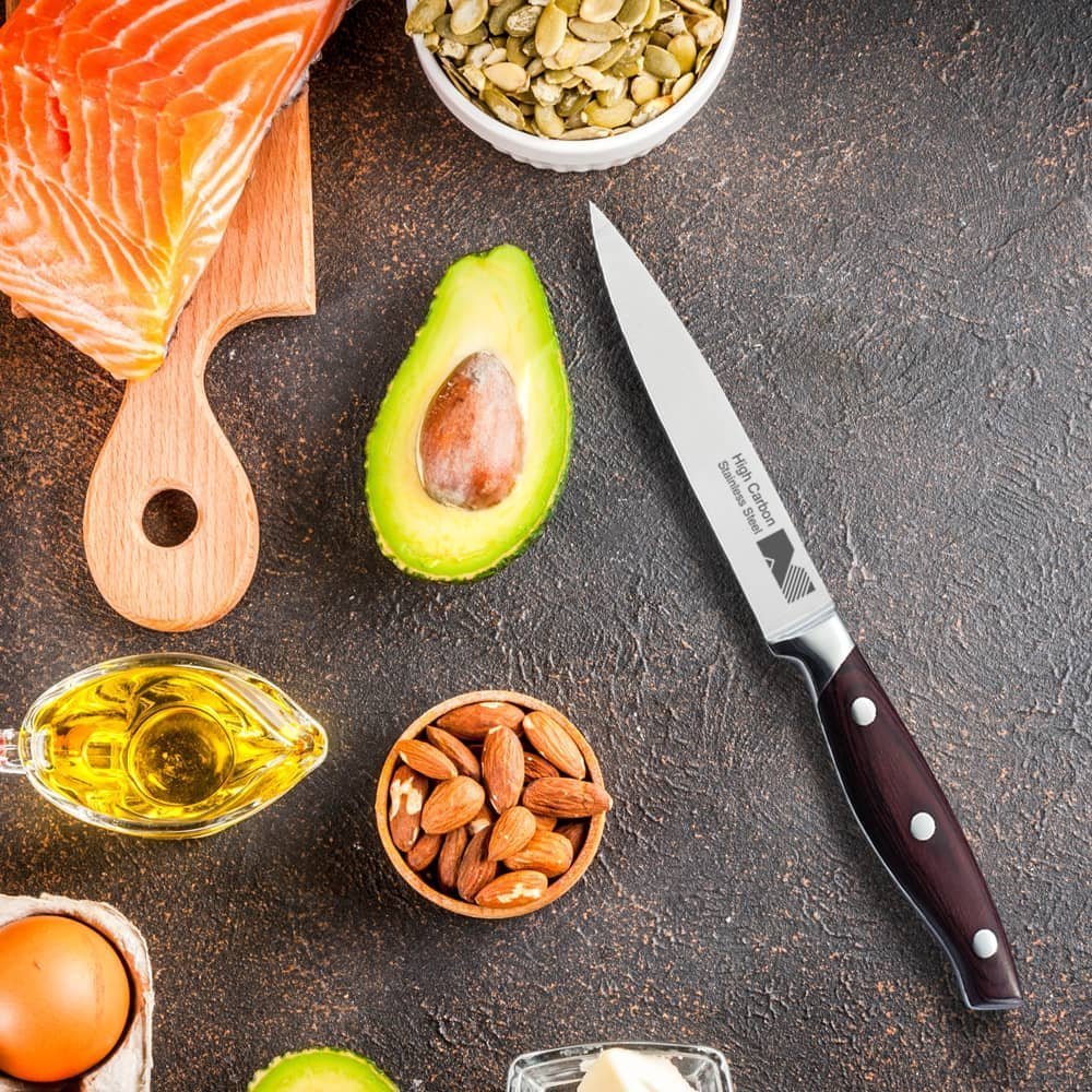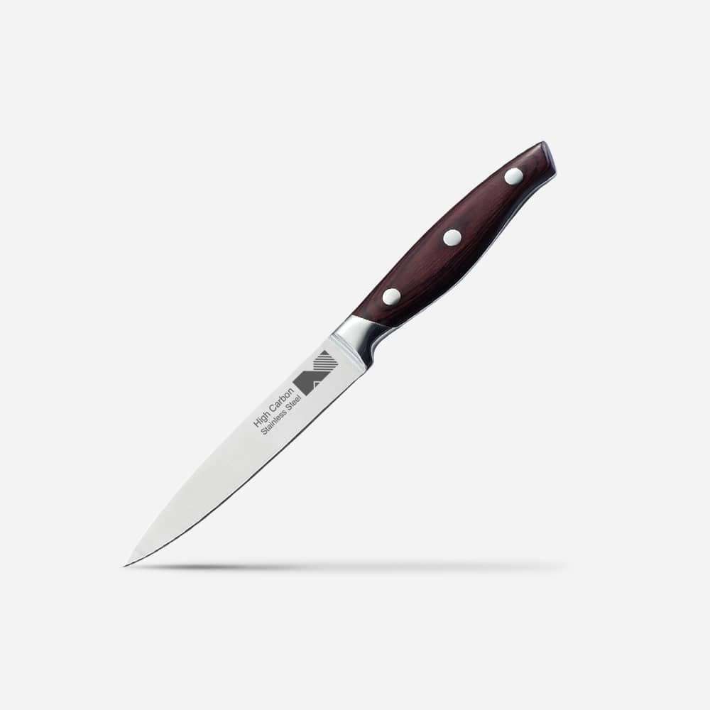 This utility knife’s 5″ blade length makes it a versatile favorite for all kinds of prep tasks, from peeling and trimming fresh produce to slicing meats and cheeses.