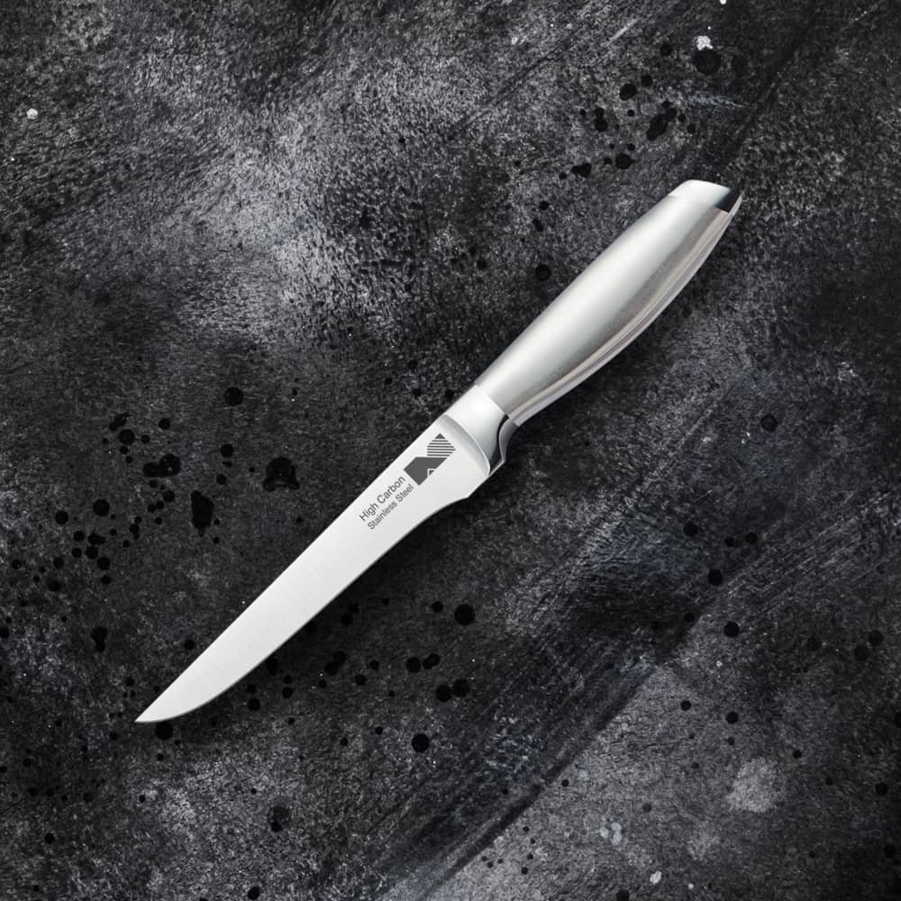 Whether you’re boning chicken breasts or preparing a crown roast, this knife’s narrow blade is ideally shaped for the close work of trimming and separating meat from bone.