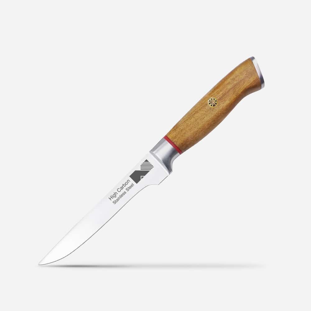 Whether you’re boning chicken breasts or preparing a crown roast, this knife’s narrow blade is ideally shaped for the close work of trimming and separating meat from bone.