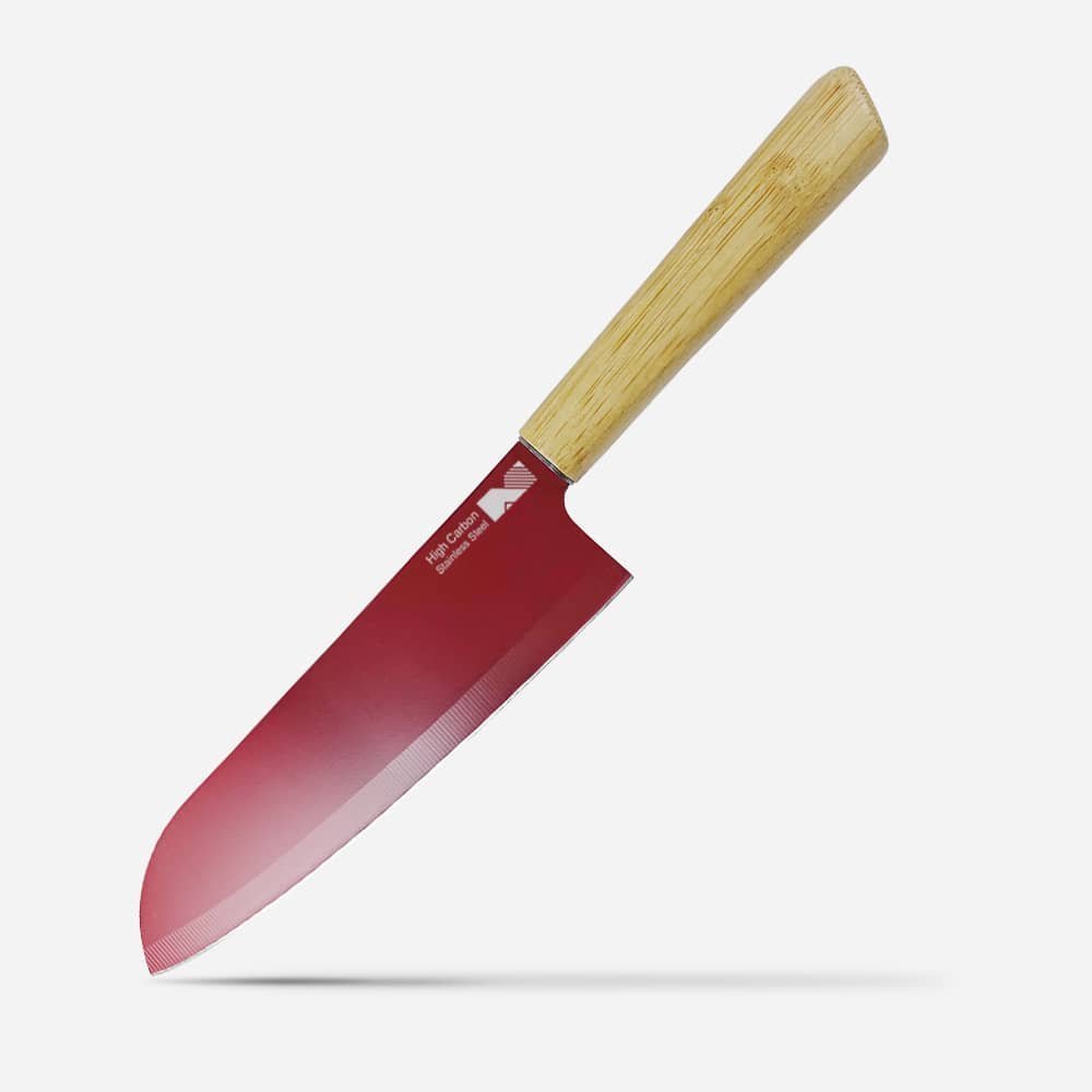 Combining the benefits of a chef’s knife and cleaver, this santoku is indispensable for chopping, slicing and dicing. Oval indentations on the blade’s sides reduce friction to produce clean, uniform cuts and minimize sticking.