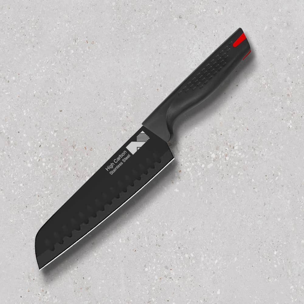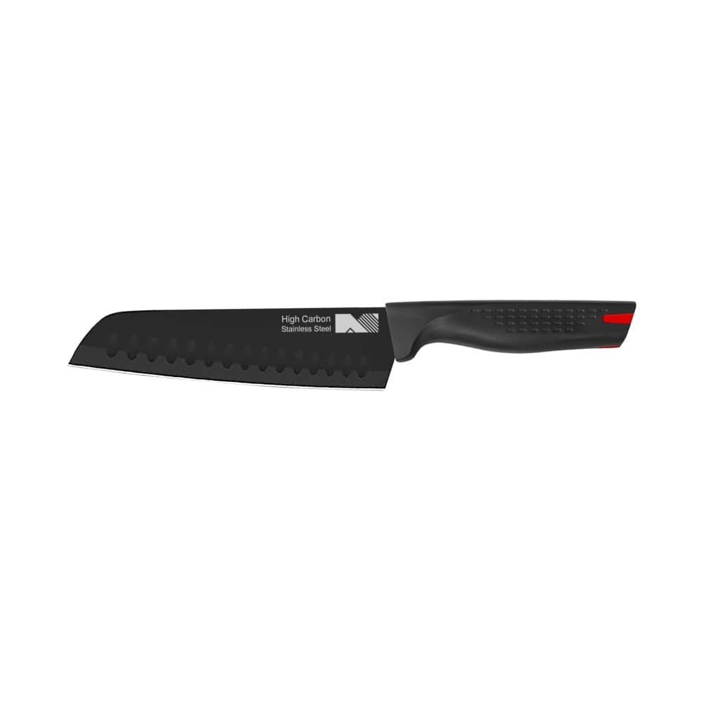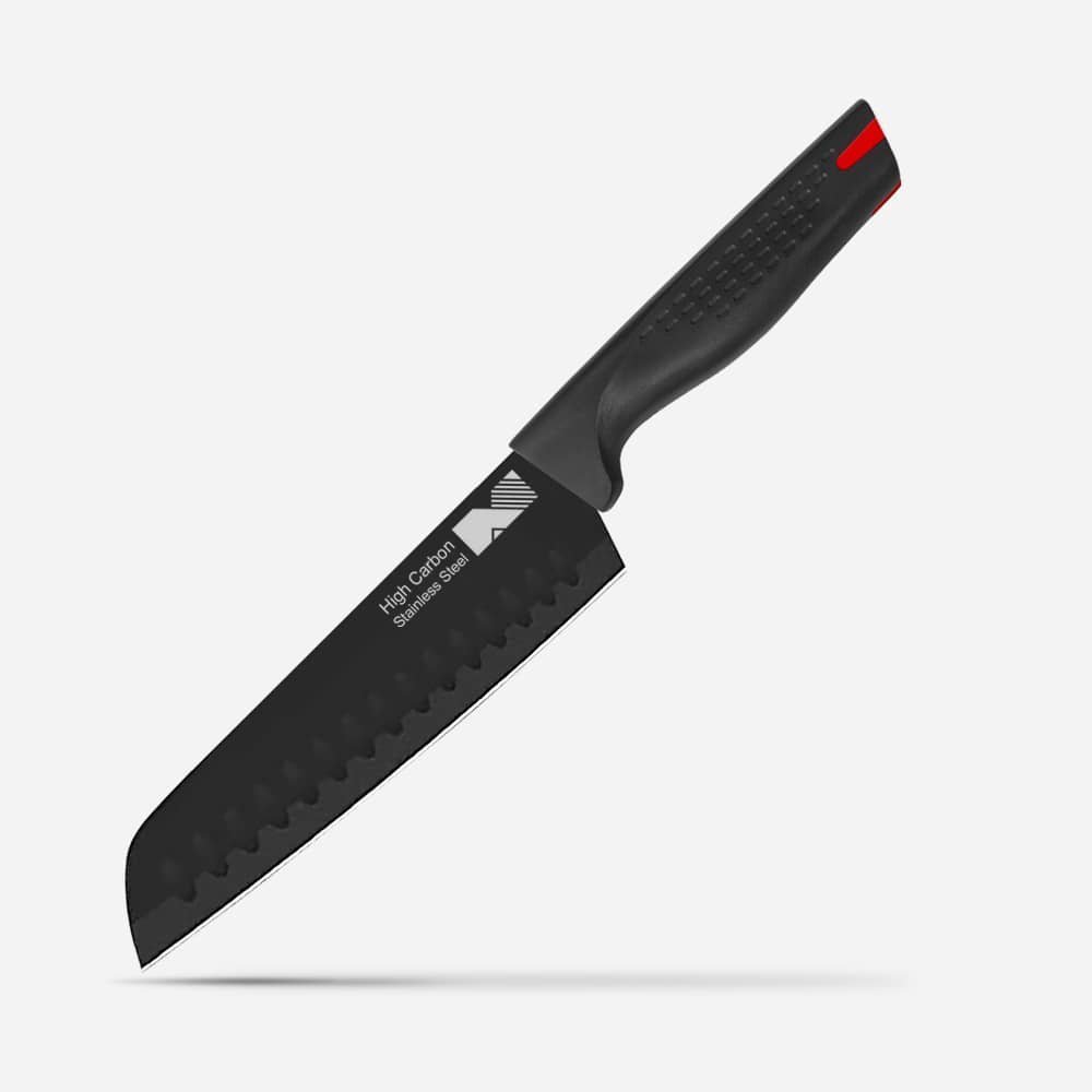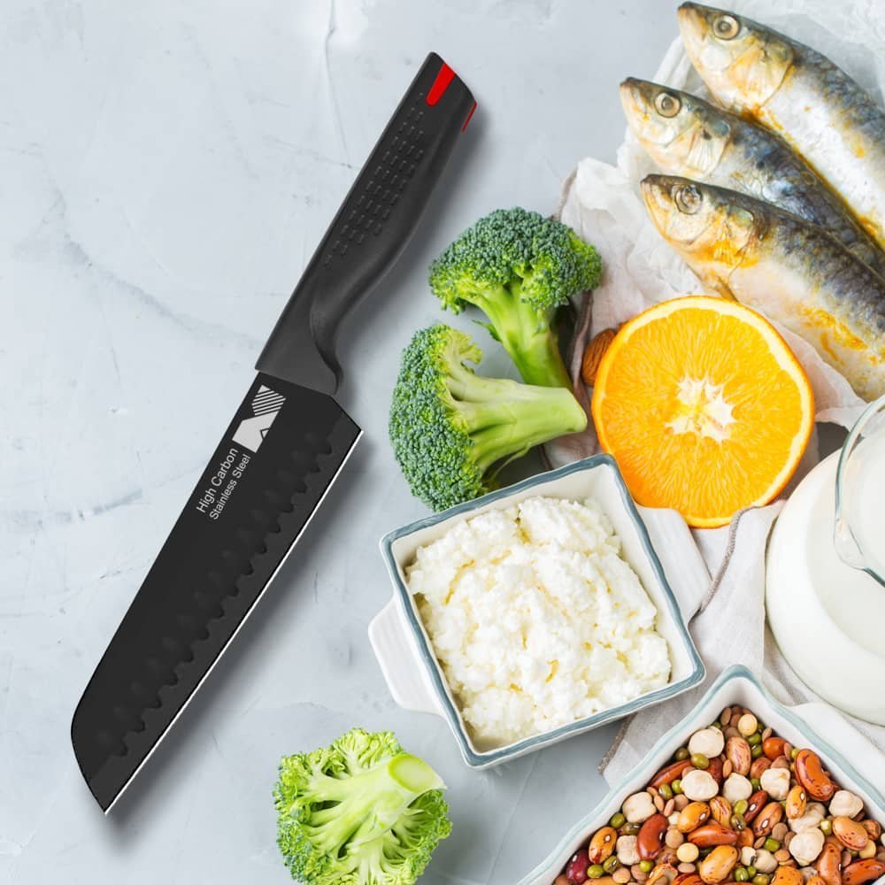 Combining the benefits of a chef’s knife and cleaver, this santoku is indispensable for chopping, slicing and dicing. Oval indentations on the blade’s sides reduce friction to produce clean, uniform cuts and minimize sticking.