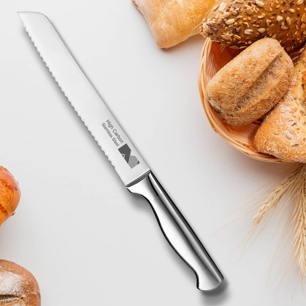 Designed for modern sustainability, features high-carbon stainless-steel blades crafted. This knife has a long, narrow blade with a serrated edge that’s ideal for slicing through crusty loaves without compressing their delicate interiors.